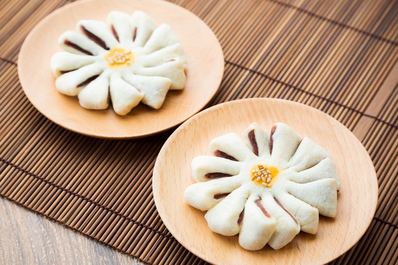 菊花酥:小麦粉、ラード、砂糖、こしあん、卵黄、ごま
